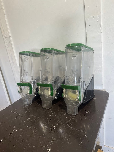 Second Life-EquipmentLOT OF 3 TRADE FIXTURES 618/624 COMMERCIAL BULK FOOD GRAVITY BIN DISPENSERS MAKE: TRADE FIXTURES MODEL: 618/624 NSF APPROXIMATE DIMENSIONS: 21...