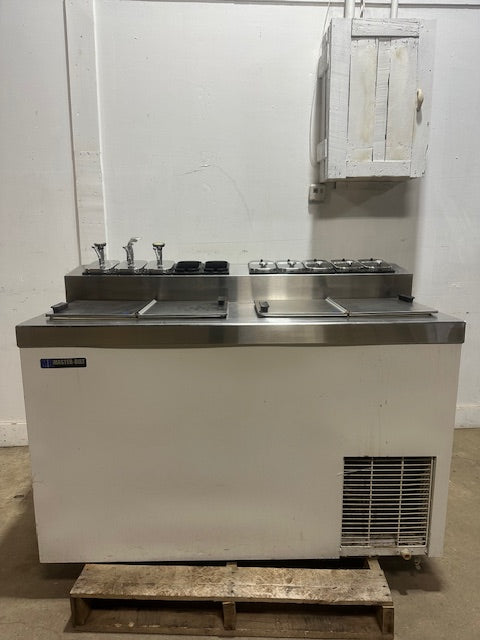 Second Life-Equipment"MASTER-BILT"COMMERCIAL FLIP LID ICE CREAM DIPPING CABINET W/ TOPPING/SYRUP RAIL MAKE- MASTER BUILT PLEASE SEE PIC FOR PLUG APPROXIMATELY DIMENSIO...